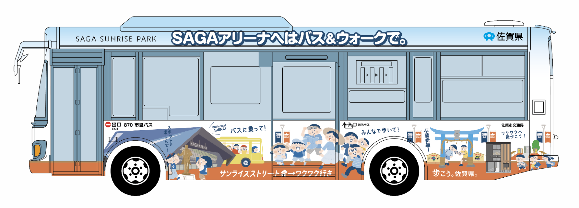 佐賀県では、より楽しくアリーナへお越しいただきたいことから『SAGAアリーナへはバス&ウォークで。』というキャンペーンを実施しています。