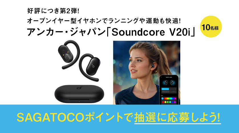 サガテレビとのタイアップ企画として毎月実施している抽選キャンペーンの2月の景品は、「好評につき第2弾!オープンイヤー型イヤホンでランニングや運動も快適!」